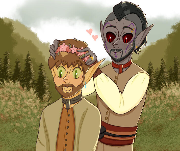 Tel making me a flower crown on one of our dates in Falkreath hold (isn't he the sweetest?)